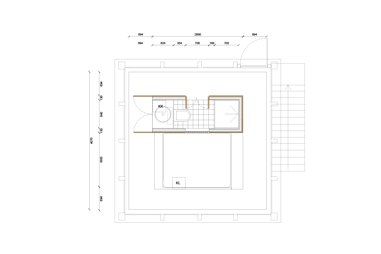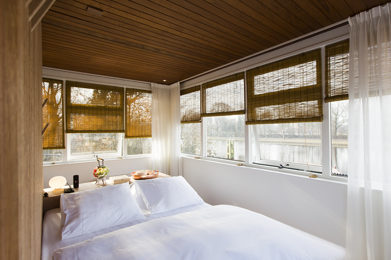 Buiksloterdraaibrug is set in a beautiful and calm part on the edge on the city of Amsterdam. It has windows on all 4 facades – this inspired us to create a central core that housed the bathroom and bed and left a corridor around the perimeter. We were also inspired by Japanese woodworking and this influences the finish of the core.